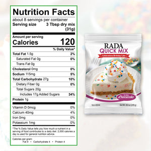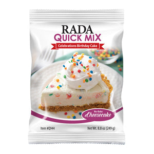 Whatever the occasion, you will enjoy a party in every bite of Rada Cutlery's no-bake sweet cream Celebrations Birthday Cake Cheesecake Quick Mix.