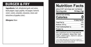 The Burger & Fry Seasoning can be used to season meats, potatoes, and vegetables, and it's particularly good on hamburgers and French fries.