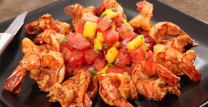 Prepare marinade as directed on package and add shrimp. Marinate for 30 minutes. Prepare Watermelon Pico de Gallo by combining all ingredients; set aside. Preheated grill on medium heat. Remove shrimp from marinade and place on skewers. Grill for approximately two minutes per side (do not overcook). Serve shrimp alongside Watermelon Pico de Gallo.
